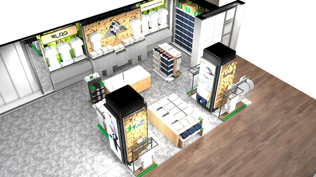 This is a branded retail space for Lifted Research Group (LRG) sited within Macy’s flagship department store in New York City. I worked with the Creative Director and digital media developers at Vizwerks to create a design concept that would be on-brand and compelling, featuring a highly engaging and technically advanced digital media wall.